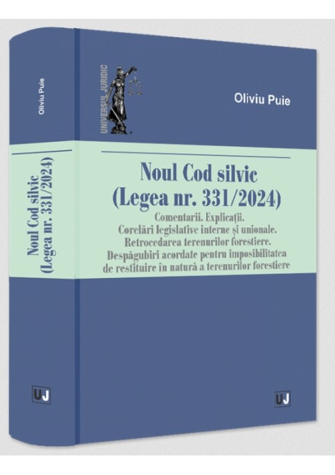 Volumul intitulat „Noul Cod silvic (Legea nr. 331/2024). Comentarii. Explicatii. Corelari legislative interne si unionale. Retrocedarea terenurilor forestiere. Despagubiri acordate pentru imposibilitatea de restituire in natura a terenurilor forestiere” reprezinta prima monografie din dreptul romanesc care analizeaza, dupa adoptarea noului Cod silvic, in mod exhaustiv si interdisciplinar, atat implicatiile aduse de noul cadru normativ in domeniul reformei domeniului silvic, cat si aspectele complexe ale regimului juridic al terenurilor din Fondul forestier national proprietate publica si proprietate privata.