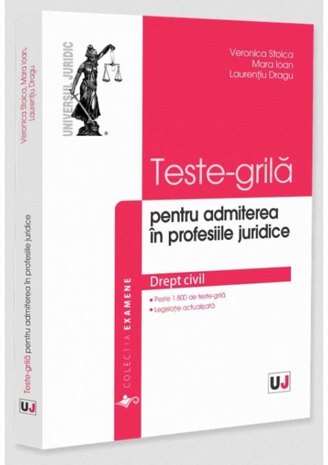 Despre lucrare. Prezenta lucrare cuprinde peste 1.800 de teste-grila din materia teoriei generale a actului juridic civil, a drepturilor reale principale, a teoriei generale a obligatiilor, a contractelor speciale si a dreptului la mostenire. La elaborarea acesteia s-a urmarit ca ea sa raspunda nevoilor de consolidare si aprofundare a cunostintelor dobandite cu privire la institutiile dreptului civil care fac obiectul concursurilor de promovare in profesiile juridice, dar, in acelasi timp, sa faciliteze familiarizarea cu aceasta metoda de abordare a unei probe de verificare a cunostintelor juridice. Culegerea de teste-grila ofera un instrument obiectiv de monitorizare a progresului, prin evidentierea nivelului de intelegere a institutiilor avute in vedere, si functioneaza totodata ca o sursa eficienta de recapitulare, reunind intr-un format accesibil intrebari relevante pentru o pregatire eficienta. Lucrarea se adreseaza celor care aspira la o cariera de judecator, procuror, avocat, notar, dar si studentilor si, in general, tuturor celor care sunt preocupati de verificarea propriului nivel de pregatire in domeniul dreptului civil, precum si de dezvoltarea abilitatilor de a realiza o analiza rapida si de a gestiona eficient timpul in diferite contexte de examinare. Fiecare test-grila are cate trei variante de raspuns, dintre care una sau doua pot fi corecte, constituind un instrument util in procesul de studiu, invatare si autoevaluare, si poate contribui semnificativ la succesul tuturor celor care doresc sa dobandeasca o profesie juridica.   Cuprinsul lucrarii. Lucrarea cuprinde probleme de drept legate de raportul juridic civil, actul juridic civil, prescriptia extinctiva, aplicarea legii civile in timp si spatiu, dreptul de proprietate publica si privata, posesie, dezmembramintele dreptului de proprietate, dreptul comun al contractelor, raspunderea civila delictuala, dinamica obligatiilor, mostenirea legala si testamentara, dar si contractele speciale. Modul de concepere a testelor-grila a avut ca finalitate atat fixarea informatiei juridice, cat si familiarizarea cititorilor cu folosirea rationamentelor logico-juridice, indispensabile in activitatea profesionala.   Despre autori. Lucrarea de fata este realizata de un colectiv de autori format exclusiv din cadre didactice universitare cu activitate stiintifica semnificativa, dar, fundamental, cu o experienta la catedra de peste 25 de ani fiecare. Aceasta experienta indelungata, acumulata prin formarea multor generatii de studenti si prin contactul constant cu realitatile procesului de invatamant juridic, confera autorilor capacitatea de a aborda dreptul dintr-o perspectiva aplicativa, clara si adaptata nevoilor practice ale studiului.   Puncte forte. Culegerea reprezinta un instrument util pentru studentii si absolventii facultatilor de drept care aspira la o cariera juridica. Prin modul atent de redactare a testelor-grila, autorii au urmarit optimizarea procesului de recapitulare si consolidarea eficienta a materiei din dreptul civil. Lucrarea acopera tematica ceruta la examenele de licenta, concursurile de admitere la Institutul National al Magistraturii, precum si examenele de admitere in avocatura si notariat, fiind astfel adecvata pentru multiple etape de formare, de la pregatirea universitara pana la nivel profesional. In plus, testele-grila sunt elaborate in conformitate cu modificarile legislative la zi, asigurand informatii corecte si actualizate intr-un domeniu juridic aflat in continua schimbare.