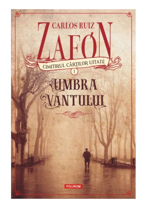 Ne aflam in Barcelona anului 1945. Intr-o dimineata cetoasa, domnul Sempere, proprietar al unui anticariat din inima orasului vechi, isi duce fiul, Daniel, la Cimitirul Cartilor Uitate, o cladire impunatoare, veche si sumbra, plina de volume ale unor autori necunoscuti sau uitati, carti aduse de oameni care au tinut sa le fereasca de parasire, de indiferenta sau de la disparitie. Potrivit traditiei, cine intra pentru prima oara trebuie sa adopte o carte. Dintre miile de tomuri, Daniel se simte atras de Umbra vantului de Julian Carax, un roman misterios pe care, ajuns acasa, il citeste in aceeasi noapte dintr-o suflare. In anii urmatori, Daniel se pomeneste implicat intr-o serie de intrigi si de crime, trecand prin numeroase primejdii pentru a salva cartea de anumite persoane. In acelasi timp, el se lanseaza in cercetarea amanuntita a biografiei autorului, cel putin la fel de enigmatica si de stranie precum romanele sale. „Daca ati crezut cumva ca marele roman gotic a murit odata cu secolul al XIX-lea, Umbra vantului o sa va faca sa va razganditi. Un roman de prima mana, plin de capcane, de intrigi care se desfac unele din altele.” (Stephen King) „O aventura fantastica, un roman scris parca de Jorge Luis Borges in stilul Numelui trandafirului. Zafon are grija sa dozeze iubirea, magicul, crimele si nebunia astfel incat sa-l captiveze pana si pe cititorul cel mai sceptic. Diabolic de bun!” (Elle) „Umbra vantului este, in fond, o scrisoare de dragoste adresata literaturii si cititorilor la fel de pasionati de povesti precum tanarul erou al cartii.” (Entertainment Weekly)